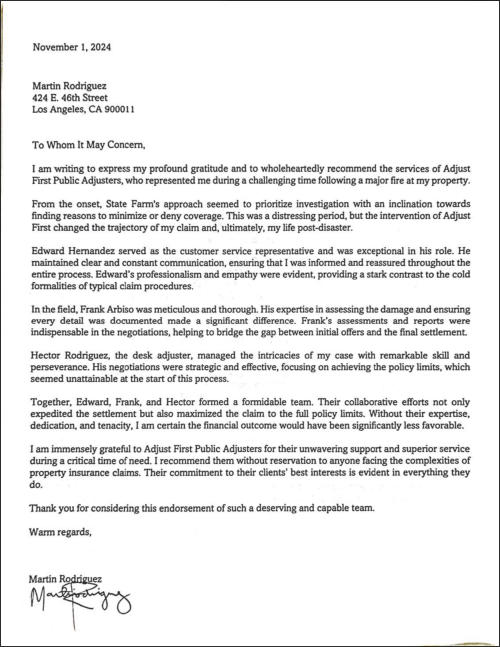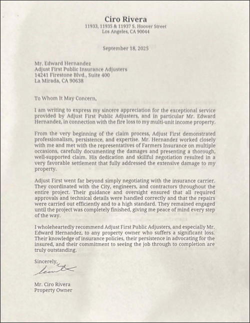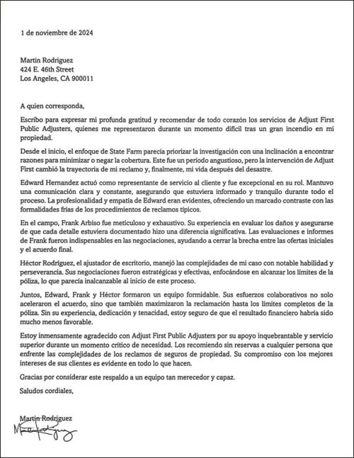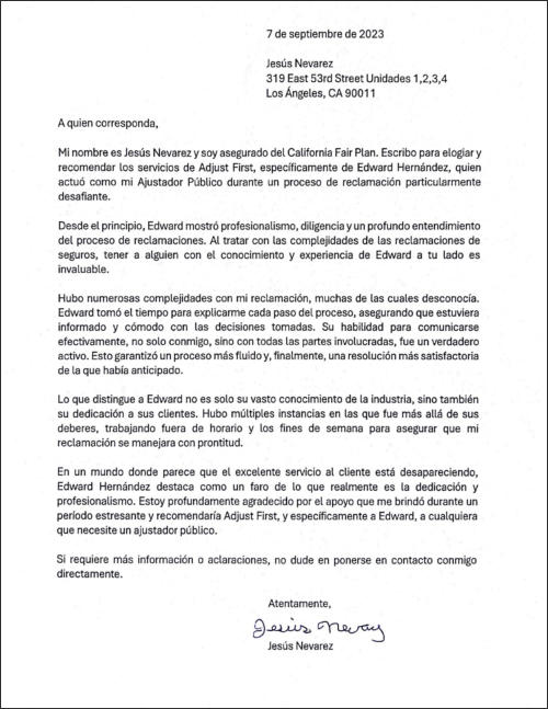 Quiénes SomosLos Ajustadores Públicos son expertos en seguros con licencia que defienden a los asegurados mediante la evaluación precisa de los daños a la propiedad, la interpretación de pólizas de seguro complejas y la negociación con las compañías de seguros para garantizar una compensación justa por los reclamos.Trabajamos Para UstedLos Ajustadores Públicos trabajan en representación de los asegurados, aportando experiencia en reclamaciones de seguros, y están autorizados por el Departamento de Seguros, lo que garantiza el cumplimiento de las regulaciones y estándares de la industria.Maximice su IndemnizaciónLos Ajustadores Públicos aprovechan su amplio conocimiento de las pólizas de seguro y sus habilidades de negociación de reclamaciones para garantizar que los asegurados reciban la máxima indemnización posible por los daños a su propiedad.