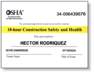 CAL OSHA 10 Hour Safety Training